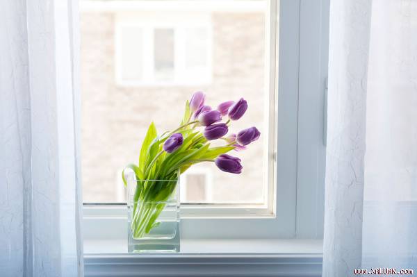 Bên bệ cửa sổ, bình hoa tươi giúp tô điểm cho không gian