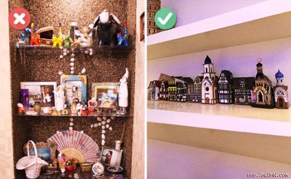 Bạn không nhất thiết phải trưng bày tất cả những món đồ được tặng, mua được qua các chuyến đi. Bạn hãy lựa chọn một vài thứ yêu thích nhất, bày theo bộ sưu tập hoặc có bố cục rõ ràng